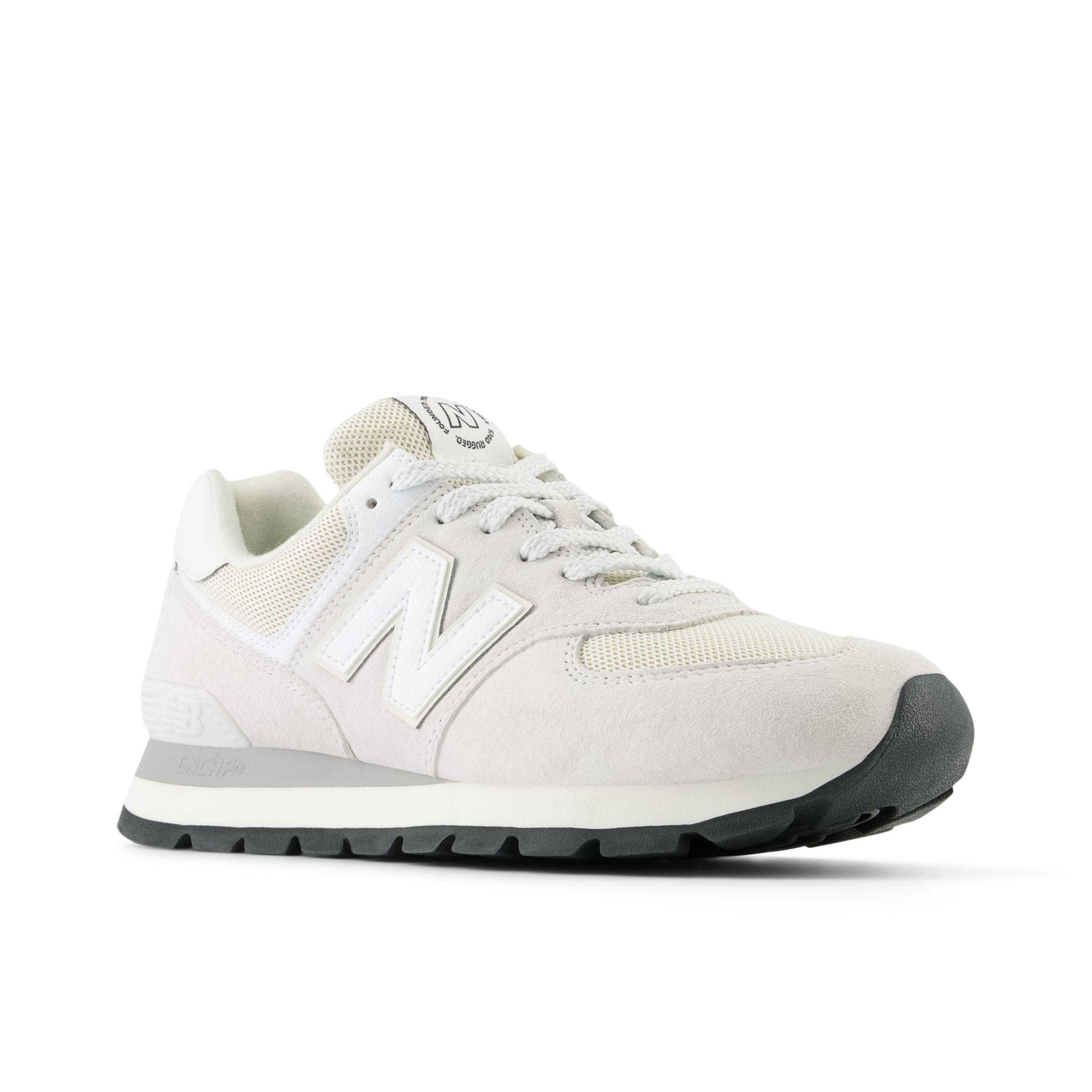 «El modelo más emblemático de New Balance». Eso lo dice todo, ¿verdad? Pues en realidad no. ¿Quién sabe? Puede que el 574 sea nuestro icono más inesperado. El 574 se concibió para ser un calzado fiable para multitud de usos distintos. No se diseñó para ser una referencia en tecnología revolucionaria ni como prototipo de materiales de primera calidad. Precisamente esta versatilidad sencilla y sin pretensiones es lo que catapultó al 574 a los rankings de los mejores sneakers de todos los tiempos. Con un diseño híbrido para asfalto y trail, y con una horma más ancha que las estrechas siluetas de carrera de generaciones anteriores, el 574 ofrecía una exclusiva combinación de versatilidad, novedad, sencillez, resistencia, durabilidad y confort que se adoptó como imprescindible a nivel mundial. Por eso, en la actualidad, el 574 de New Balance es sinónimo de desafiar los límites y es un modelo que puede llevar cualquiera.