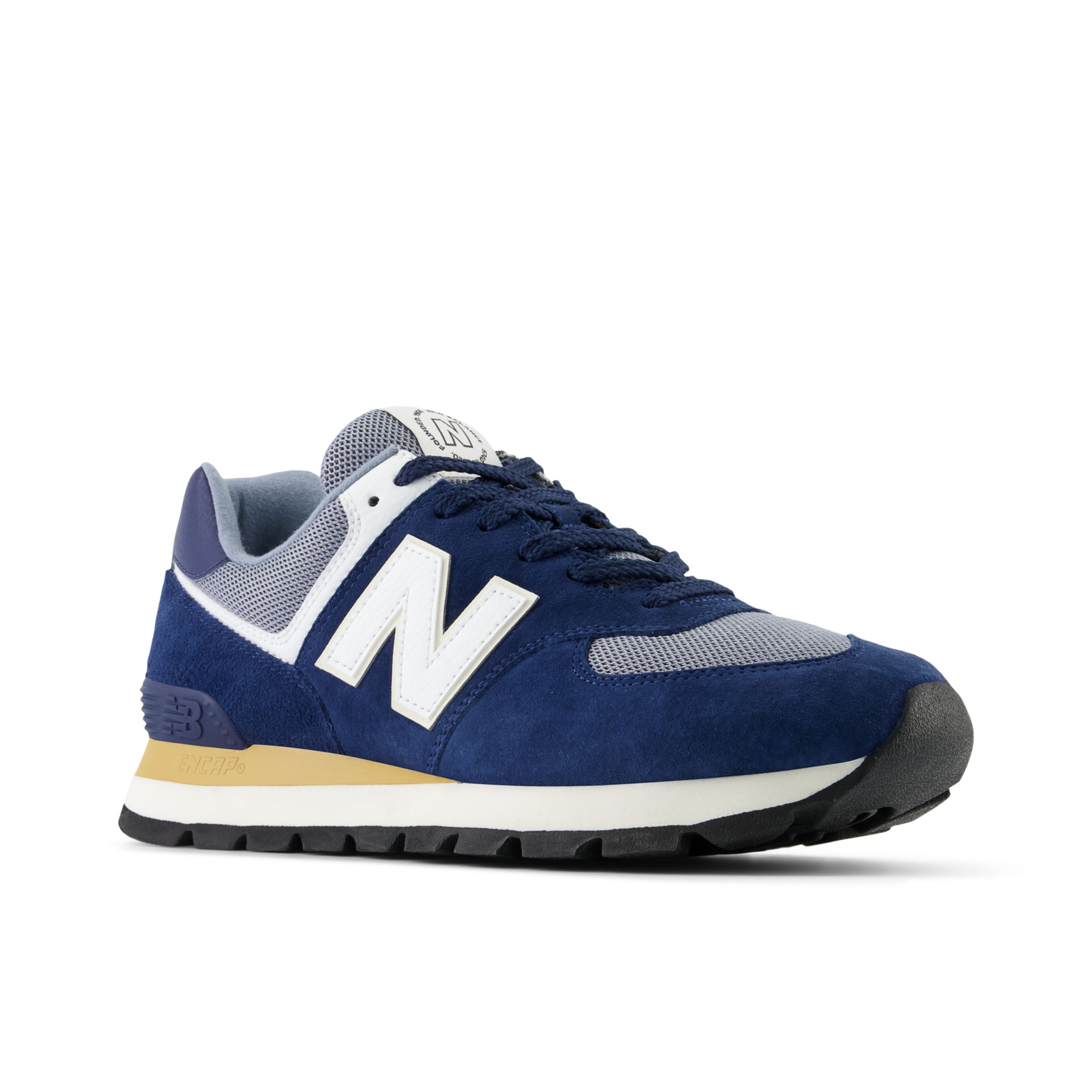 «El modelo más emblemático de New Balance». Eso lo dice todo, ¿verdad? Pues en realidad no. ¿Quién sabe? Puede que el 574 sea nuestro icono más inesperado. El 574 se concibió para ser un calzado fiable para multitud de usos distintos. No se diseñó para ser una referencia en tecnología revolucionaria ni como prototipo de materiales de primera calidad. Precisamente esta versatilidad sencilla y sin pretensiones es lo que catapultó al 574 a los rankings de los mejores sneakers de todos los tiempos. Con un diseño híbrido para asfalto y trail, y con una horma más ancha que las estrechas siluetas de carrera de generaciones anteriores, el 574 ofrecía una exclusiva combinación de versatilidad, novedad, sencillez, resistencia, durabilidad y confort que se adoptó como imprescindible a nivel mundial. Por eso, en la actualidad, el 574 de New Balance es sinónimo de desafiar los límites y es un modelo que puede llevar cualquiera.