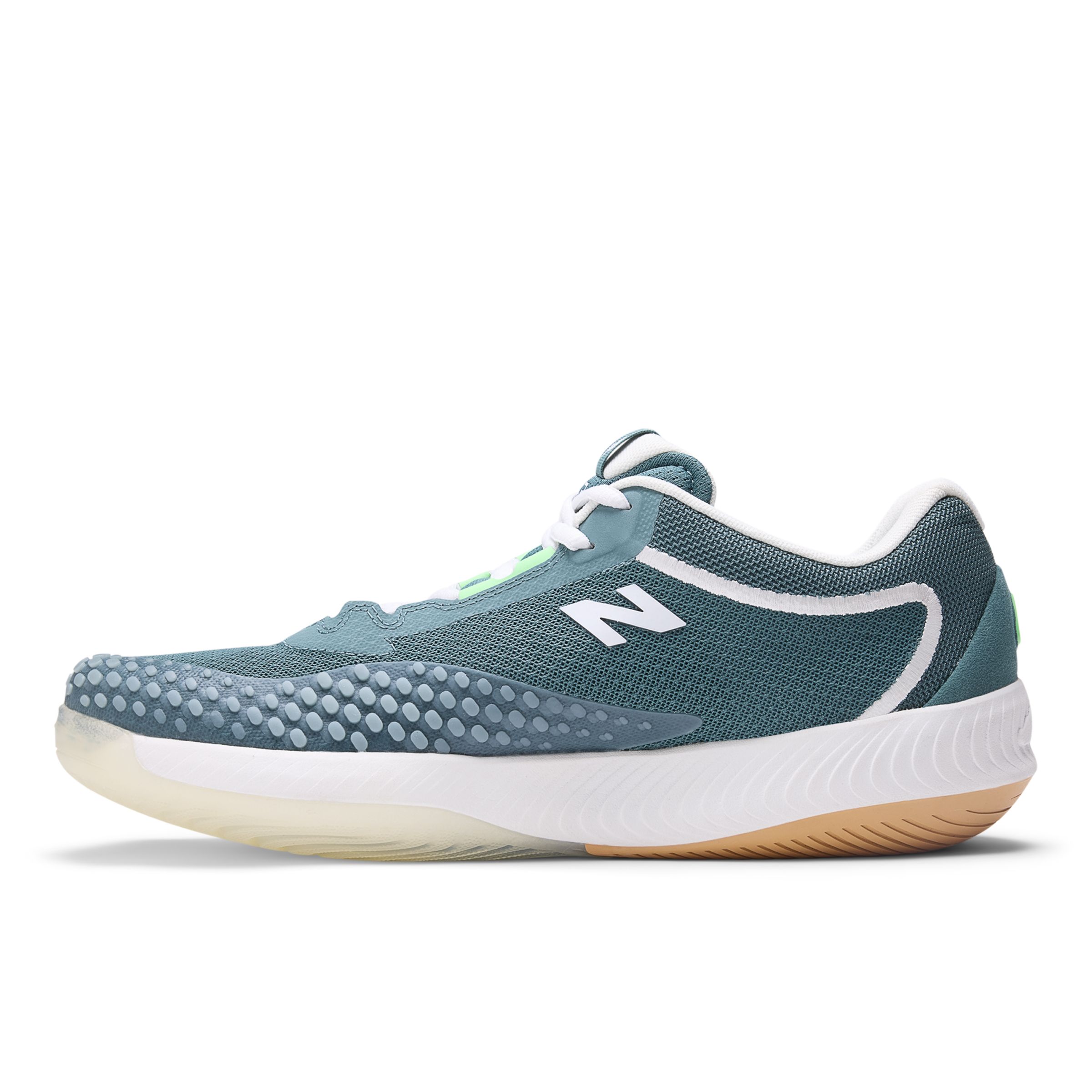 Características: La espuma FuelCell proporciona una sensación de propulsión que te ayudará a avanzar Tecnología NDure en la parte superior diseñada para proporcionar mayor durabilidad Mayor soporte y estabilidad en el talón y la suela La tecnología de la suela de goma NDurance proporciona una durabilidad superior en las zonas de mayor desgaste para aprovechar al máximo el calzado. Suela que no deja marcas Diseño inspirado en los autos de carreras 415 grams (14.6 oz) Material: Malla de red ligera para proporcionar transpirabilidad en los partidos durante los días calurosos Material sintético