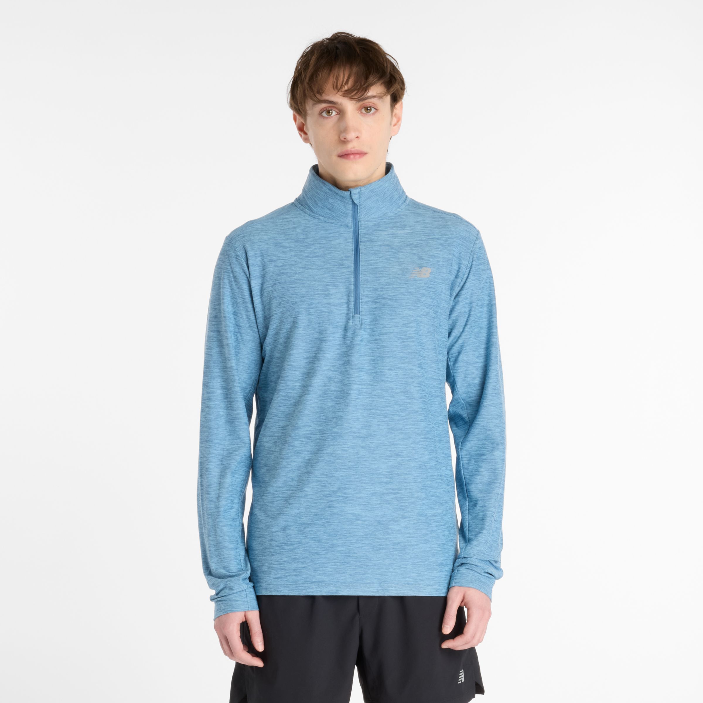 Características: La tecnología de secado rápido NB DRY mantiene la humedad lejos de tu cuerpo para ayudarte a entrenar con facilidad Cierre de un cuarto Mangas largas con presillas para los pulgares Logotipo NB reflectante Material: Tejido polyknit 84% poliéster reciclado, 16% licra.