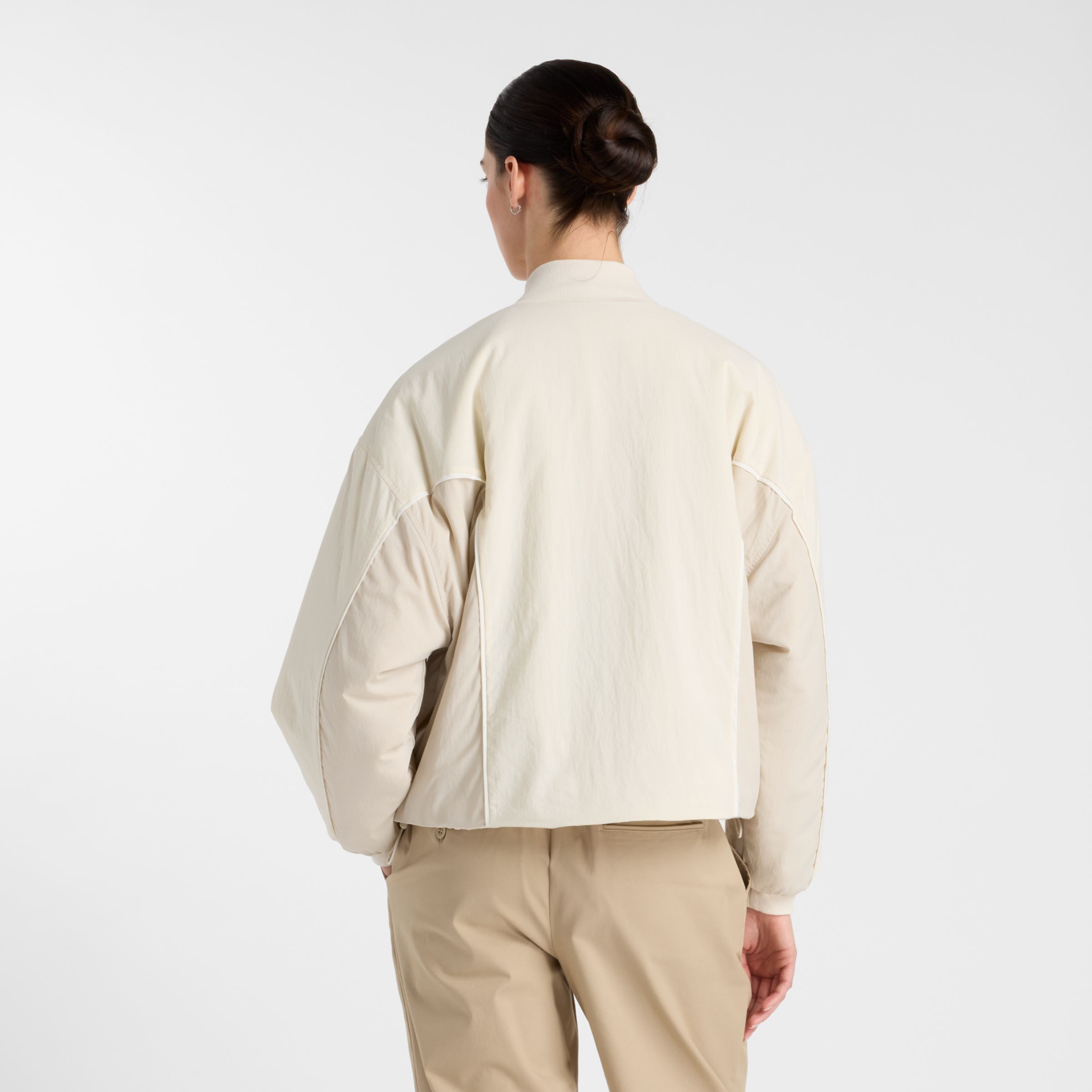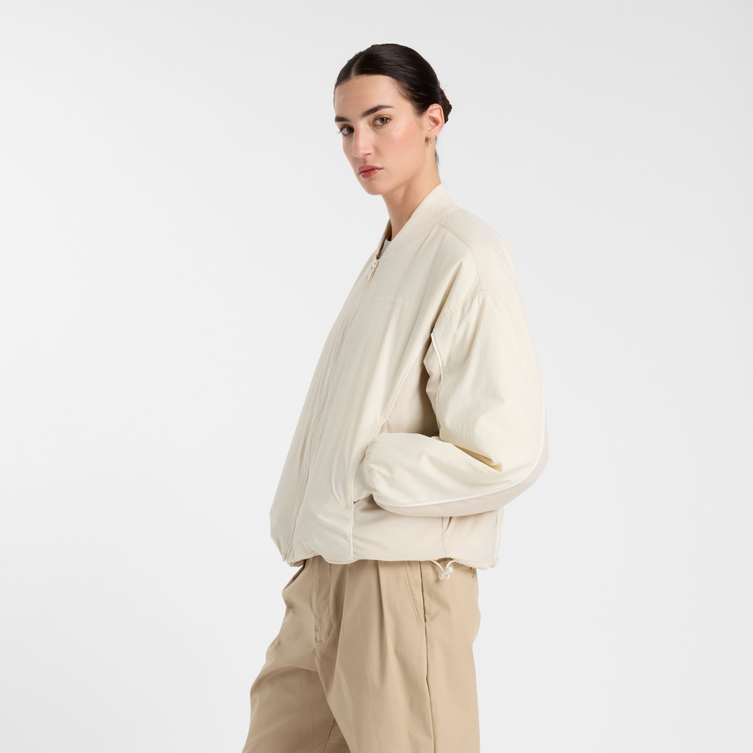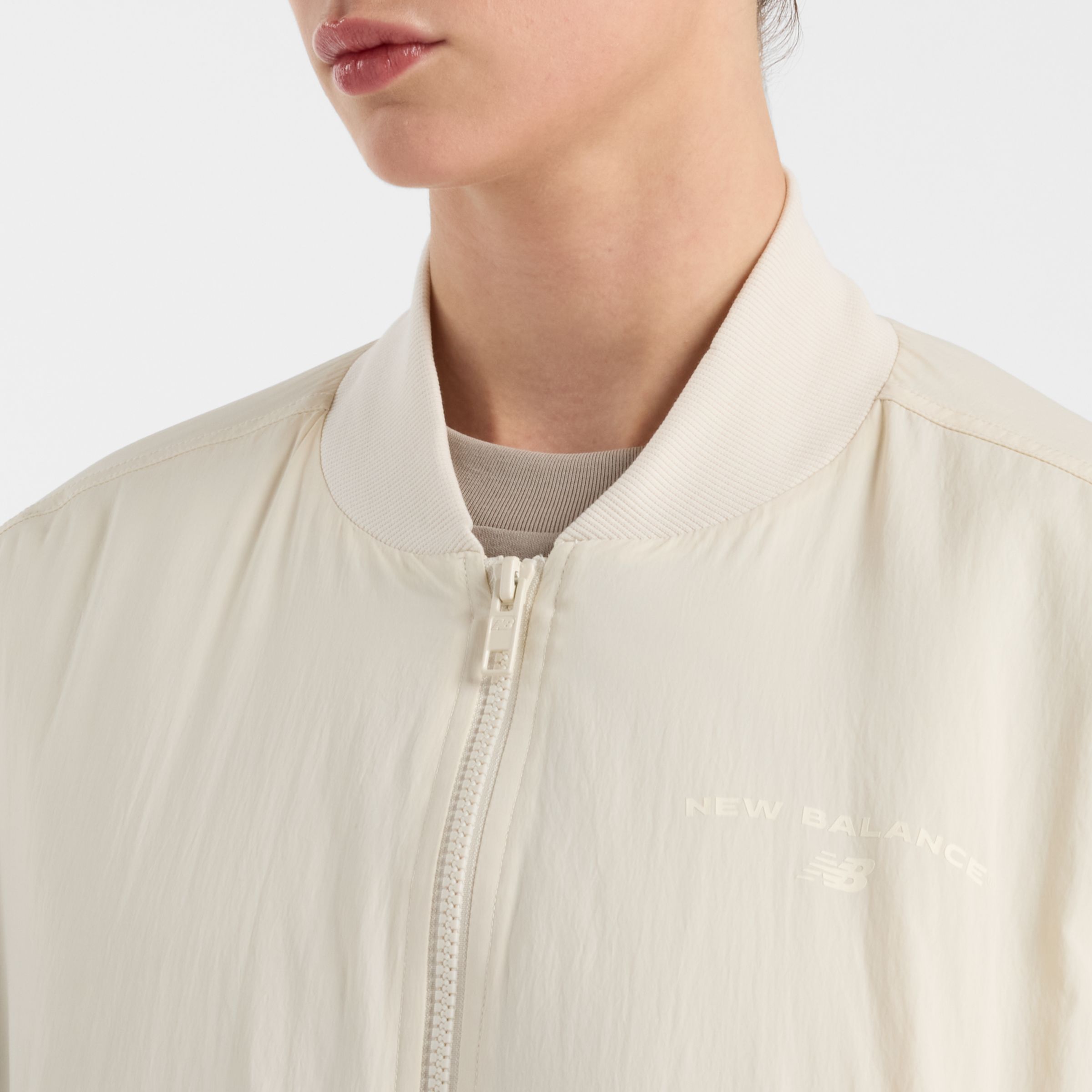 Chamarra lifestyle New Balance Reimagined Bomber Jacket de color beige para Mujer