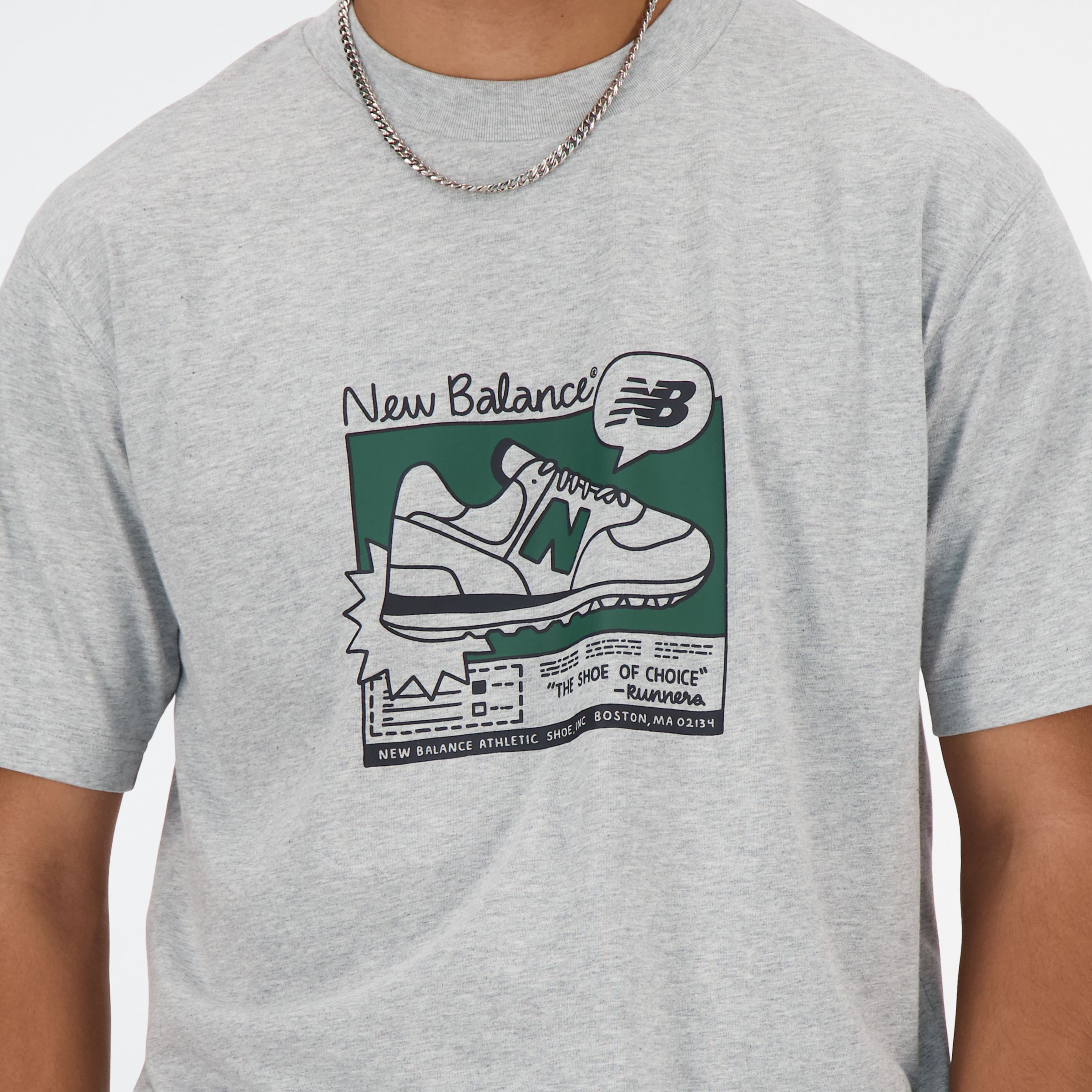 Esta playera para hombre New Balance Lifestyle color gris, esta confeccionada con tejido 100 % algodón, ajuste cómodo y relajado. Cuenta con un diseño superior que contiene gráficos de New Balance. ¡Arma tu look con estilo!