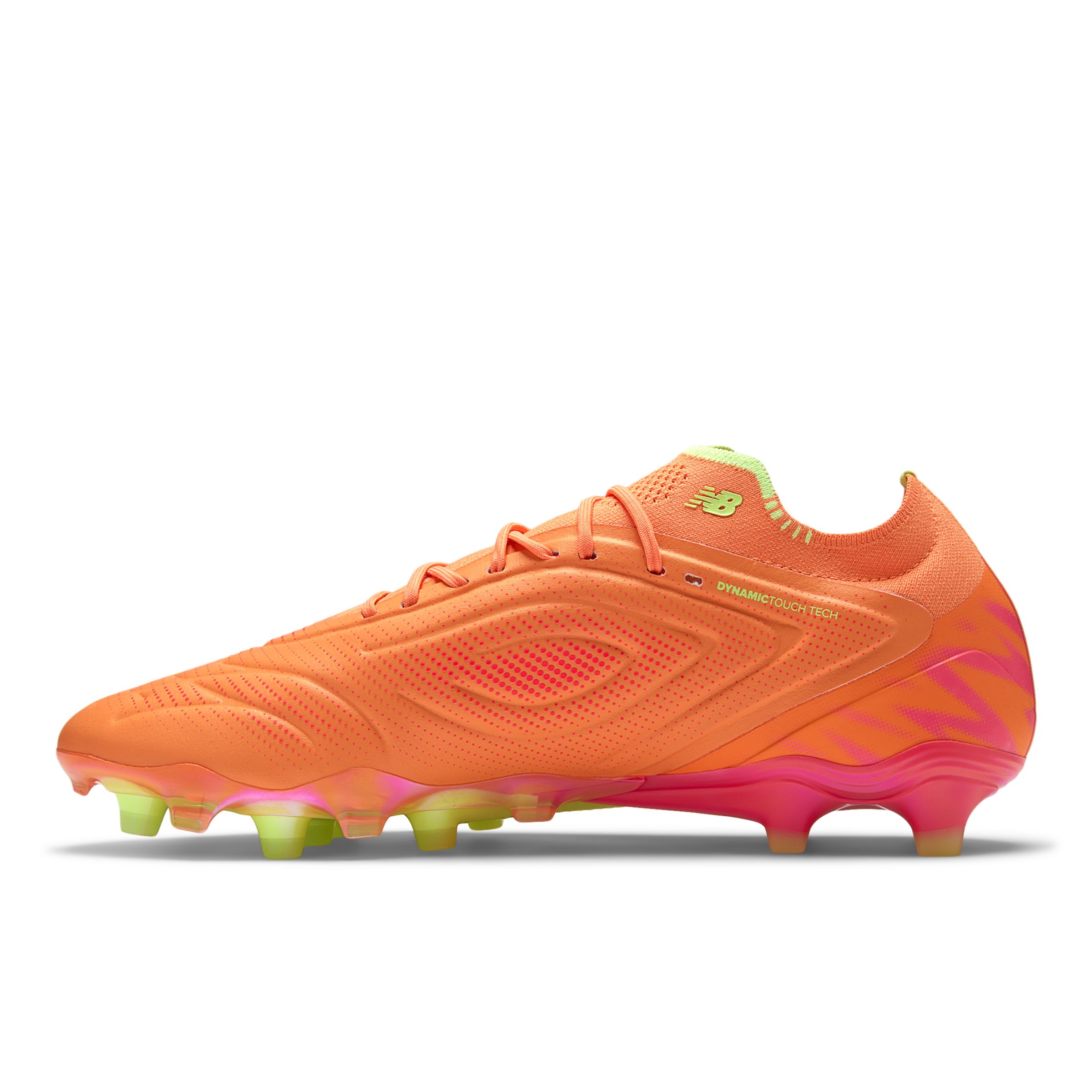 Características: Dynamic TouchTech: PU de microfibra liviano de primera calidad con canales en relieve ubicados estratégicamente y elementos de impresión de agarre para ayudar a optimizar el toque y el contacto entre el botín y la pelota Cuello Hypoknit de una sola pieza diseñado alrededor de los contornos del tobillo para brindar una experiencia de ajuste ceñido pero cómodo Suela de nailon de primera calidad para jugar en terreno firme La combinación de tacos cónicos y en forma de cuchilla en el antepié facilita el movimiento multidireccional y proporciona tracción reactiva y dinámica Paquete de talón anatómico rediseñado que brinda máxima comodidad y disminuye la necesidad de adaptación Línea Tekela usada por Endrick, Raheem Sterling, Harvey Elliot, Jordyn Huitema y Tim Weah 211.6 grams (7.5 oz) Material: La parte superior de PU de microfibra liviana de primera calidad proporciona una sensación de tacto cercano pero cómodo.