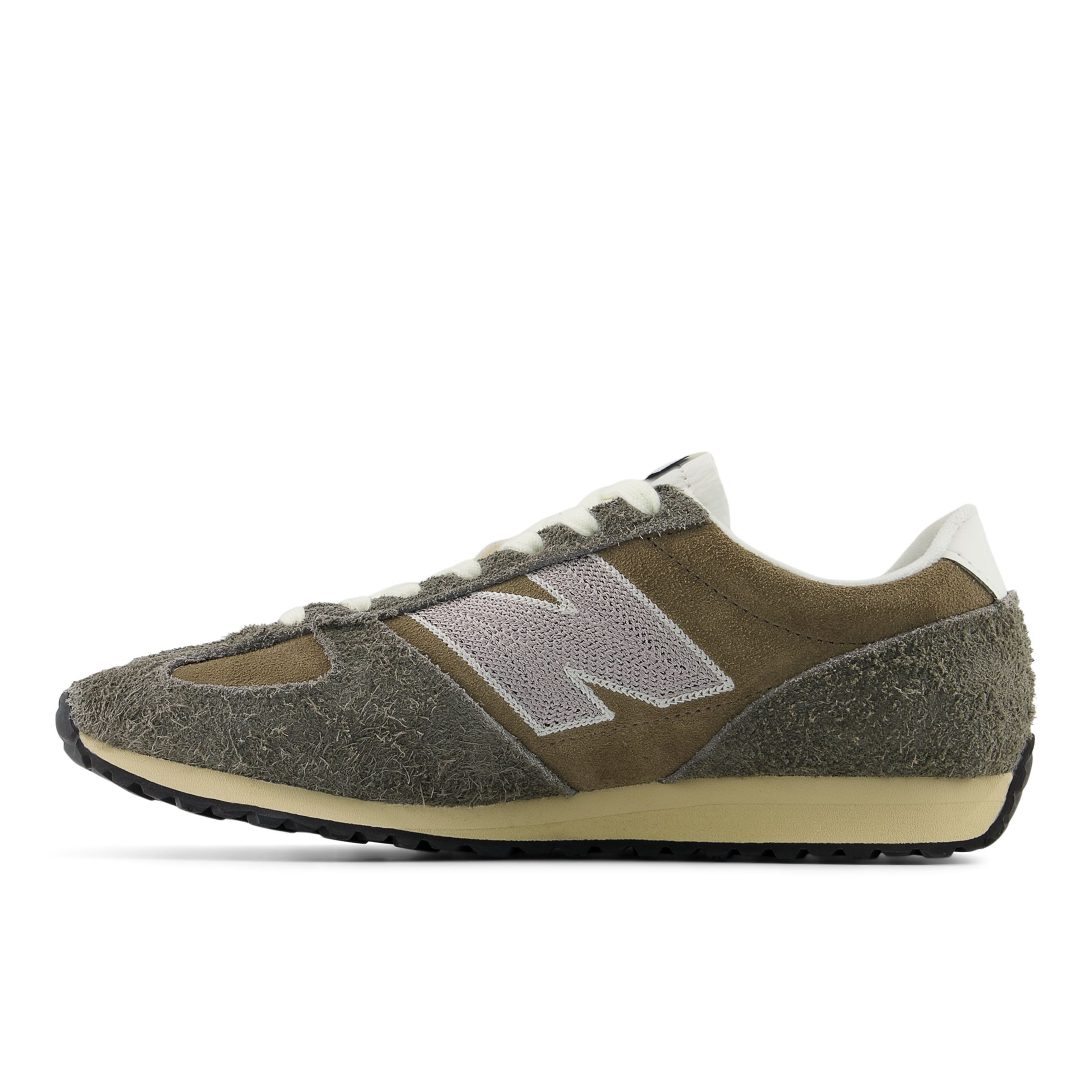 Los tenis New Balance 471 transforman la tradición del running de los años 70 en un nuevo modelo para todos los días, con una reinterpretación de las características visuales de la época. La entresuela de EVA elegante, de perfil bajo y en forma de cuña, y la suela de espiga brindan un punto de partida familiar, lo que permite que las opciones de materiales elevados tomen la delantera. La parte superior de malla transpirable y las capas de gamuza peluda brindan una apariencia desgastada, mientras que el diseño clásico de "colmillo" en la puntera es un toque visual exclusivo de New Balance que distingue al 471 del resto.