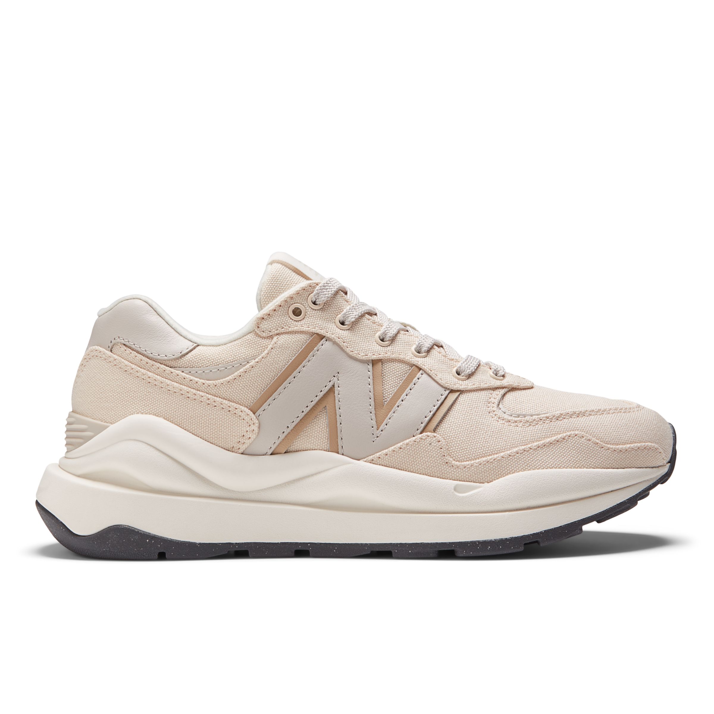 El 5740 es la respuesta a una pregunta sencilla, aunque de escala astronómica. ¿Qué sucedería si renováramos el 574, el sneaker más 'New Balance' de todos los tiempos? A pesar de su legado de versatilidad sencilla y sin pretensiones, la 574 original presentaba un diseño único para su época, un formato híbrido para carretera y trail que no se apoyaba en elementos técnicos visibles. El 5740 adopta este concepto híbrido que, sumado a unos años más de avances en diseño, consigue dotar a este diseño emblemático de una nueva perspectiva. Una silueta más aerodinámica gracias a su horma más delgada con diversos elementos extravagantes. La entresuela exclusiva combina una versión más ancha del modelo 574 clásico con detalles técnicos inspirados en los 90. Las protecciones y los ojales presentan los diseños ondulados característicos de la década de los 80.