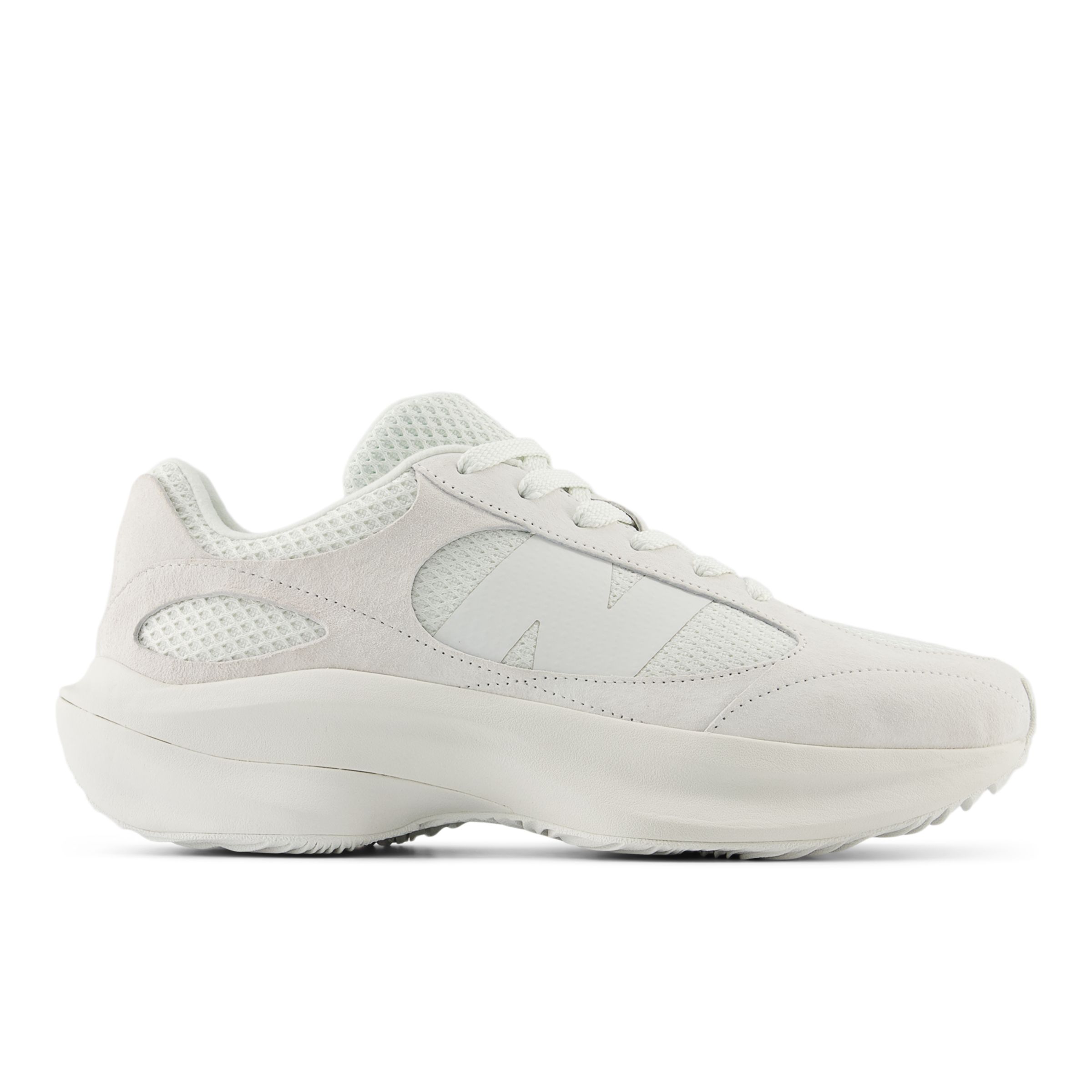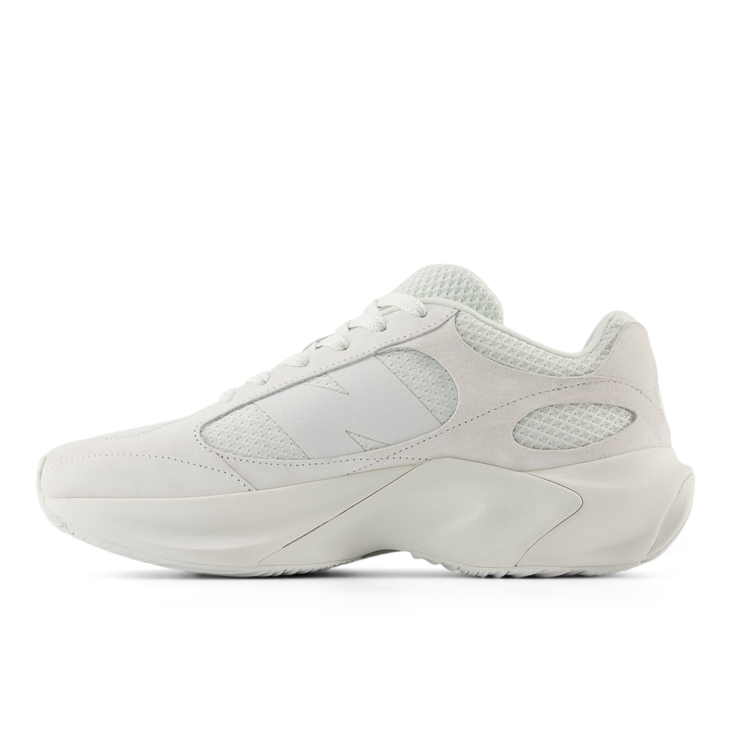 El diseño conceptual único de los tenis New Balance Lifestyle WRPD Runner para hombre color blanco ALL OVER se hace realidad gracias a una combinación de proporciones exageradas y una discreción minimalista. Esta nueva silueta sugiere una sensación de movimiento fluido, con los contornos esculpidos de una entresuela FuelCell completa y una serie de acentos ondulados que rodean un empeine de punto sobrio. Elementos individuales extraidos de modelos clásicos entremezclados más allá del reconocimiento sencillo que se incorporan de manera natural en el nuevo diseño. El WRPD Runner está diseñado para ser untenis de estilo familiar, al tiempo que explora los límites de la inspiración en el running clásico.