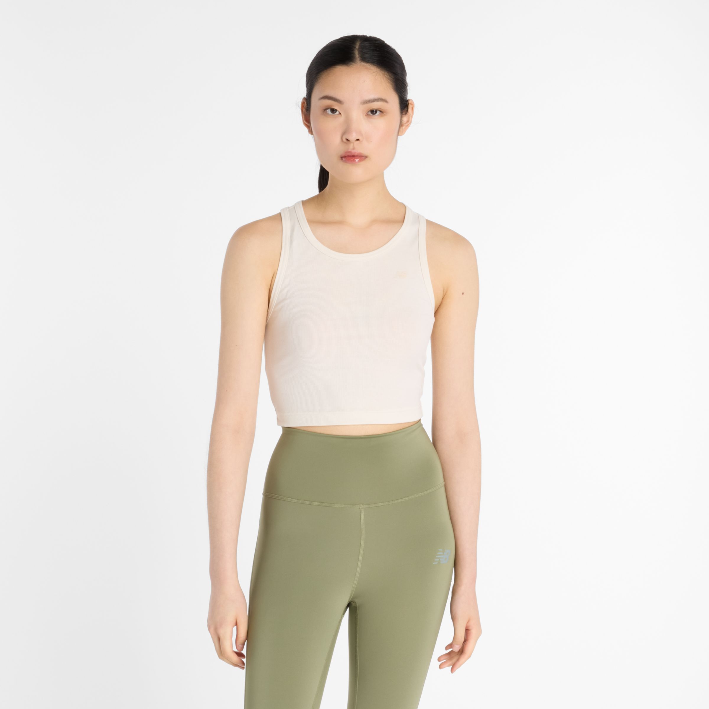 Características: La tecnología de secado rápido NB DRY mantiene la humedad lejos de tu cuerpo para ayudarte a entrenar con facilidad Sin mangas Logotipo en tonos en la parte delantera Importada Material: Tejido acanalado con textura y tacto suaves 73% poliéster reciclado, 18% lyocell, 9% licra.
